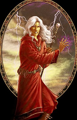 Raistlin Majere is a fictional character from the Dragonlance series of books created by Margaret Weis and Tracy Hickman. Raistlin played an extensive role in the two main series of books, particularly in Dragonlance Legends in which he was both primary protagonist and antagonist. He is twin brother to Caramon Majere, half-brother to his protective sister Kitiara uth Matar, and a significant member of the Heroes of the Lance. In the animated movie adaptation, Dragonlance: Dragons of Autumn T Bo...