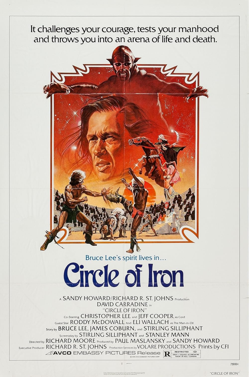 I saw this movie as a kid which would be the 80’s. I have no idea when the movie was actually made or who was in it. I can only remember bits and pieces. I remember a quest for knowledge or to be king or both? I remember a guy in a giant vat of something (oil?) by choice, giving advice. I remember the main character having to face off with a pack of coyotes, maybe coyote King? and he wins by not letting them get behind him. In the end he completes all the challenges and is shown the book. When he opens it there’s no words, just mirrors on each page. I remember him laughing and just walking away when he sees that.