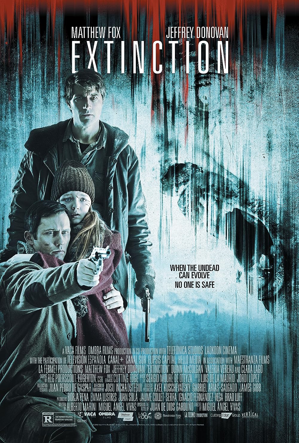 It was autumn outside. So i only remember the ending, a kid is told to stay in the house and wait for police while an adult, i assume the father, goes outside and lures crautures/monsters and explodes himself alongside with the creauteres/monsters