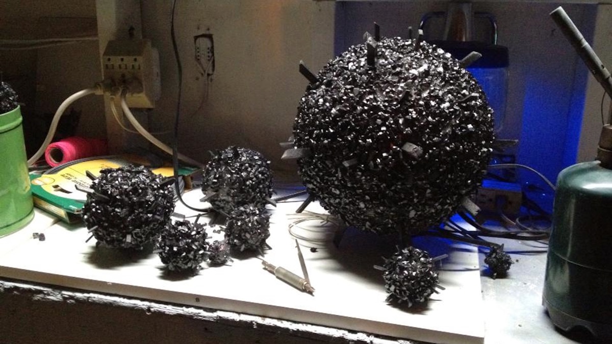 Watched this, thanks for the suggestion. Definitely not the same spheres. These are glowing/shimmering. The ones I remember are black/gray and look like old naval mines, or rather the old cartoon version. Spheres with blunted conical protrusions, maybe twelve total. Sort of like the picture of the virus you see on the news all the time, but smooth and possibly metallic. Not sure if there is a technical term for this shape.
