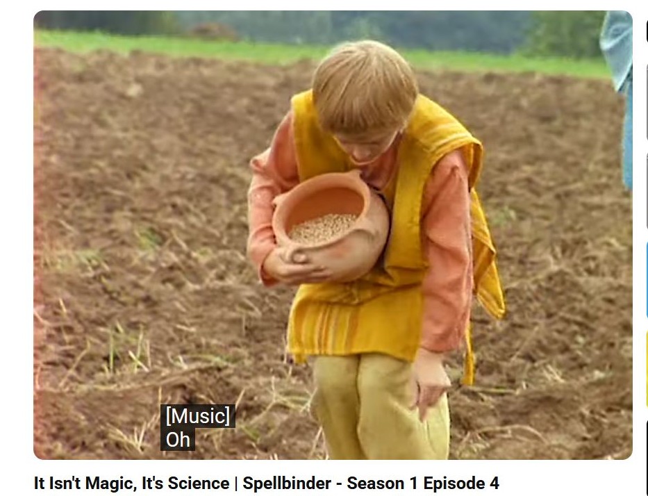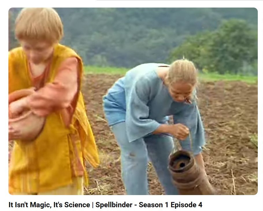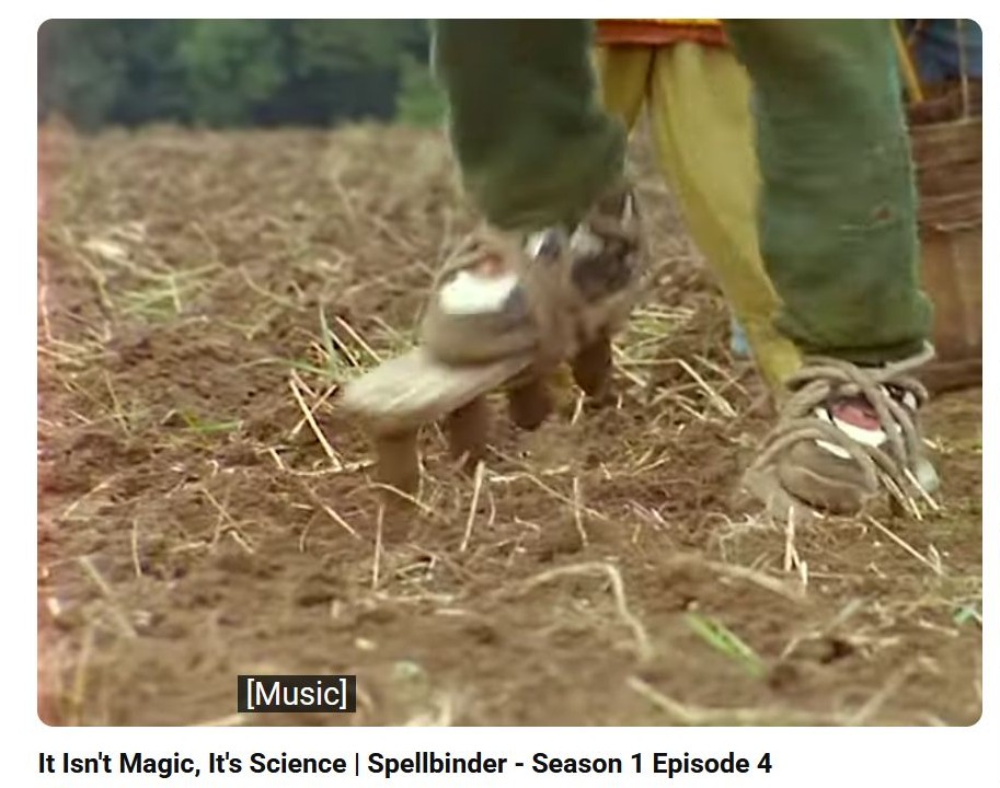 In one episode about farming, people use a hand tool to poke holes in the ground and drop seeds in. The man cannot bear to see this and creates a new tool that attaches to the foot that has 3 or so of the pokers that can be used to walk across the field and create the holes faster. People like the invention, but get scared because it is breaking the rules.